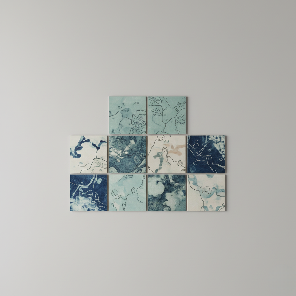 Dette abstrakte keramiske vægflise kunstsæt bringer moderne kunsthåndværk og naturlig tekstur ind i dit hjem. Hver håndlavet flise har unikke havinspirerede mønstre i rolige blå toner, hvilket skaber et harmonisk fokuspunkt på enhver væg. Perfekt til stuer, køkkener eller entréer—disse fliser kombinerer fint håndværk og moderne design for at løfte din indretning.