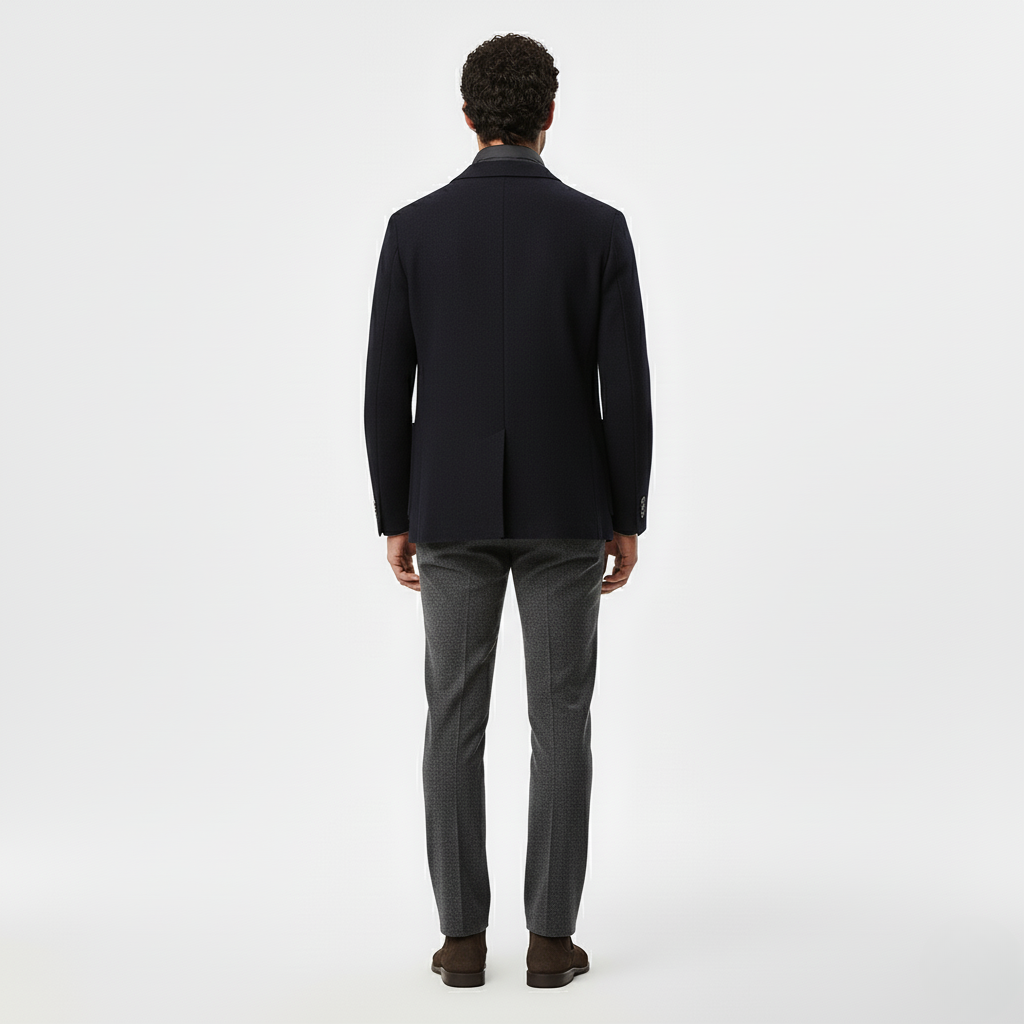 Opgrader din vintergarderobe med denne forhøjede kombination, der består af en marineblå blazer, grå quiltet vest, lysegrå sweater og grå skræddersyede bukser. De lagdelte neutrale toner skaber dybde, mens de bevarer et rent og alsidigt look perfekt til arbejde, rejser eller poleret hverdagsstil. Designet til varme, komfort og moderne herreinspireret æstetik leverer dette outfit en afbalanceret kombination af struktur og lethed.