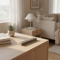 Skabt i en ren rektangulær form med en subtil nedsænket kanal holder dette stykke røgelsen oprejst og asken samlet, samtidig med at det integreres ubesværet i moderne, neutrale interiører. Det underspillede design passer smukt på natborde, sofaborde og meditationsområder og tilbyder funktion uden distraktion.