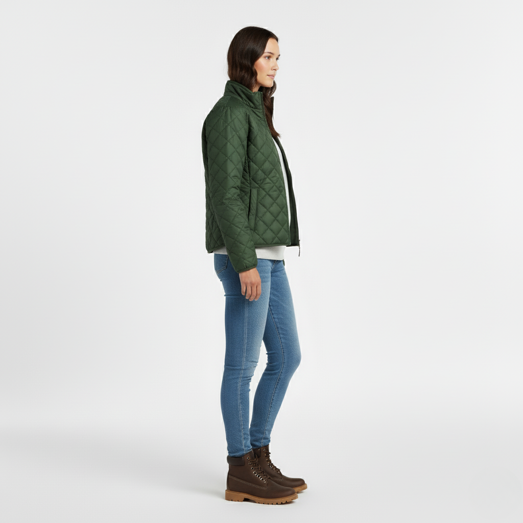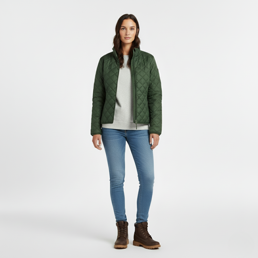 Løft dit hverdagslook med denne grønne dame-vatterede jakke, designet til varme, alsidighed og moderne appel. Den lette isolering giver hyggelig komfort uden at tilføje volumen, mens den diamanter-quiltede struktur tilfører klassisk outdoor-charme. Skabt til ubesværet lag-på-lag og heldagskomfort, er den det perfekte valg for dem, der værdsætter funktionel fashion og en poleret, afslappet æstetik.